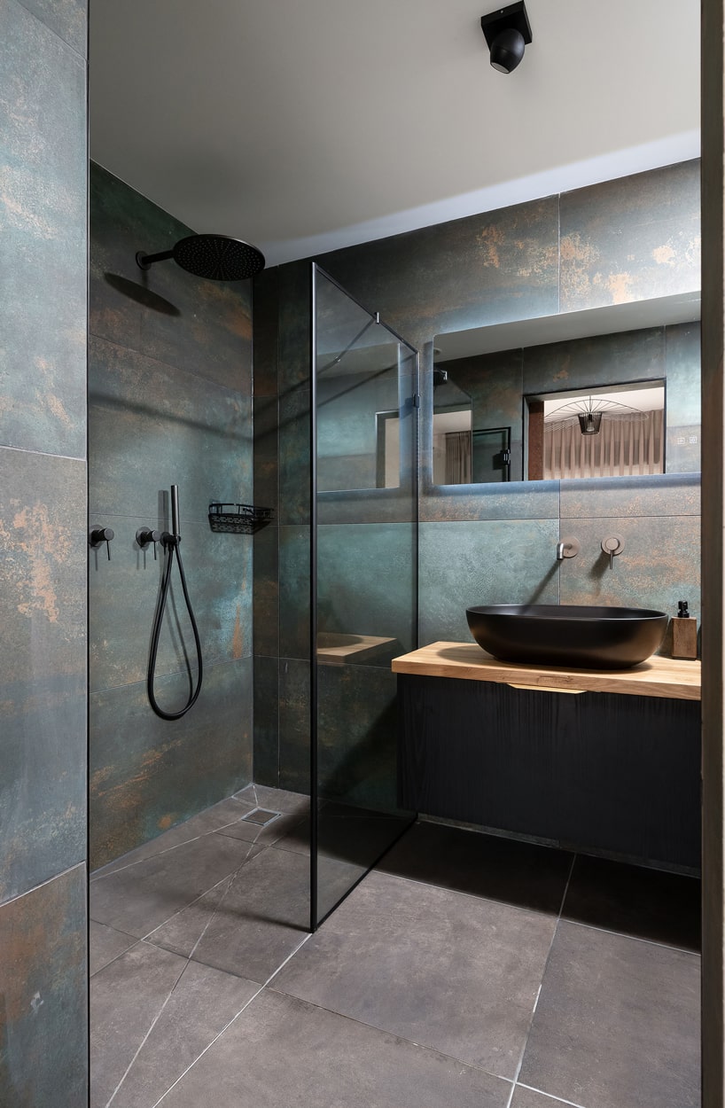 שימוש בחומריות ייחודית – שילוב בין בטון חשוף, מתכת גולמית ועץ טבעי בעל מרקם עמוק, היוצרים ניגודיות הרמונית ומלאת אופי.